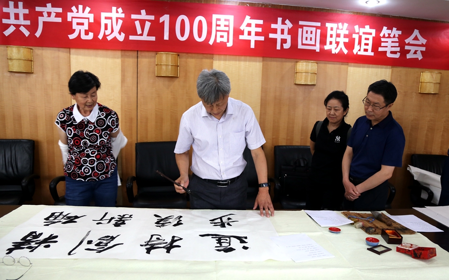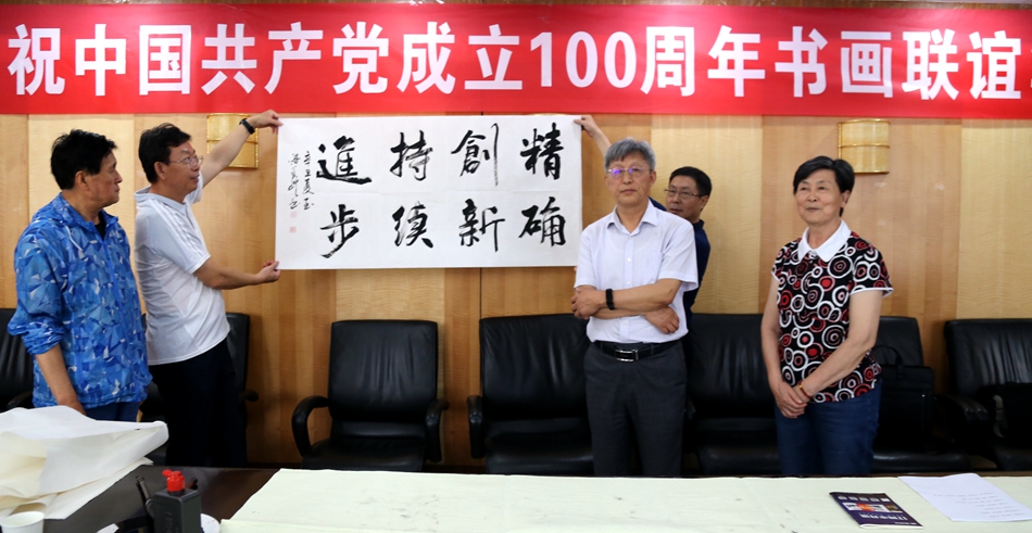 为庆祝中国共产党成立100周年,回顾党的奋斗历程,歌颂美好新时代,助力公司企业文化建设。6月24日,金火科技(南京)有限公司、烟台市老年书画研究会、烟台市老干部志愿者协会共同举办“庆祝中国共产党成立100周年联谊书画笔会”。本次活动共有18位县处级退休老干部书画家参加。