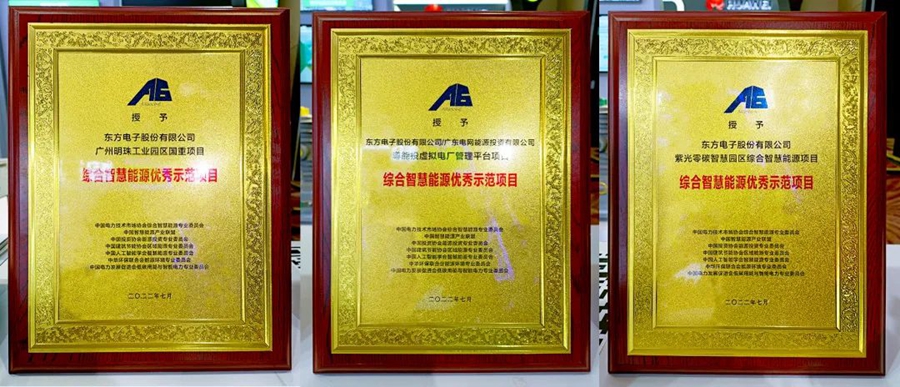 为了推广和宣传优秀示范项目和做出贡献的个人,鼓励创新,会议现场举行了“综合智慧能源十大优秀推动者”和“综合智慧能源优秀示范项目”颁证授牌仪式。股份公司总经理方正基获得综合智慧能源十大优秀推动者,金火科技(南京)有限公司参与实施的广州明珠工业园区国重项目、紫光零碳智慧园区综合智慧能源项目、粤能投虚拟电厂管理平台等三个项目分别获得本次综合智慧能源优秀示范项目奖项。